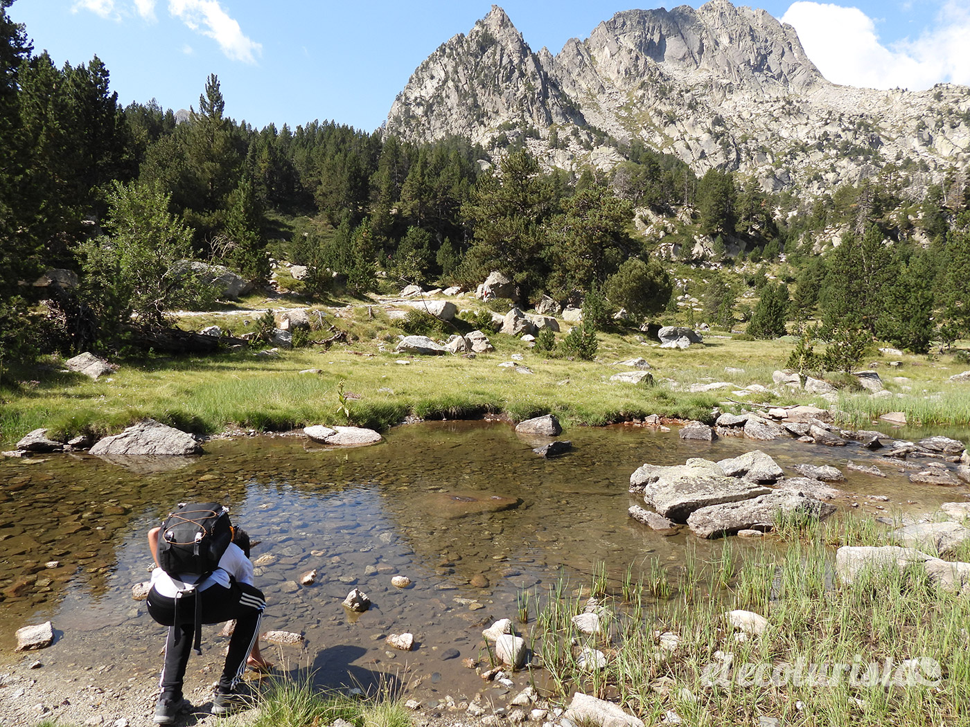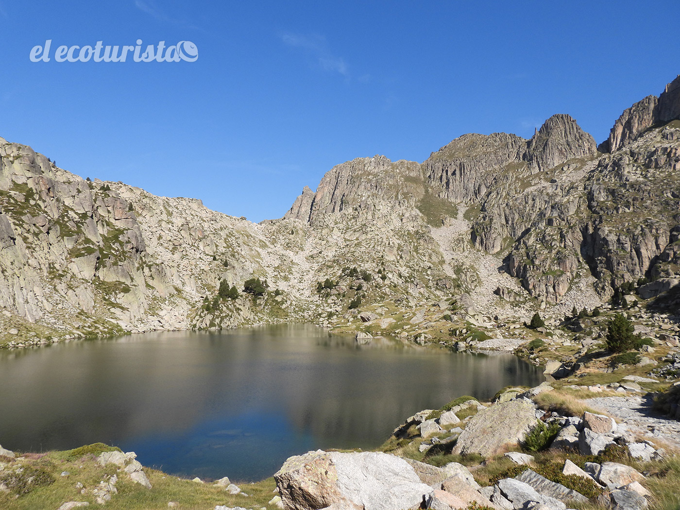 El taxi 4×4 no puede dejarnos en un escenario mejor, junto a un par de lagos de enorme belleza (estany de la Munyidera y estany dels Barbs) envueltos en un escenario rocoso sublime. Estamos a casi 2.500 metros de altitud. Desde quí solo resta ir descendiendo por la pista por la que nos ha traído el todo terreno e ir disfrutando de algunos asomos puntuales fuera de este trazado, como el que lleva hasta el Estany de Amitges, el mirador del estany de San Maurici o la cascada de Ratera.