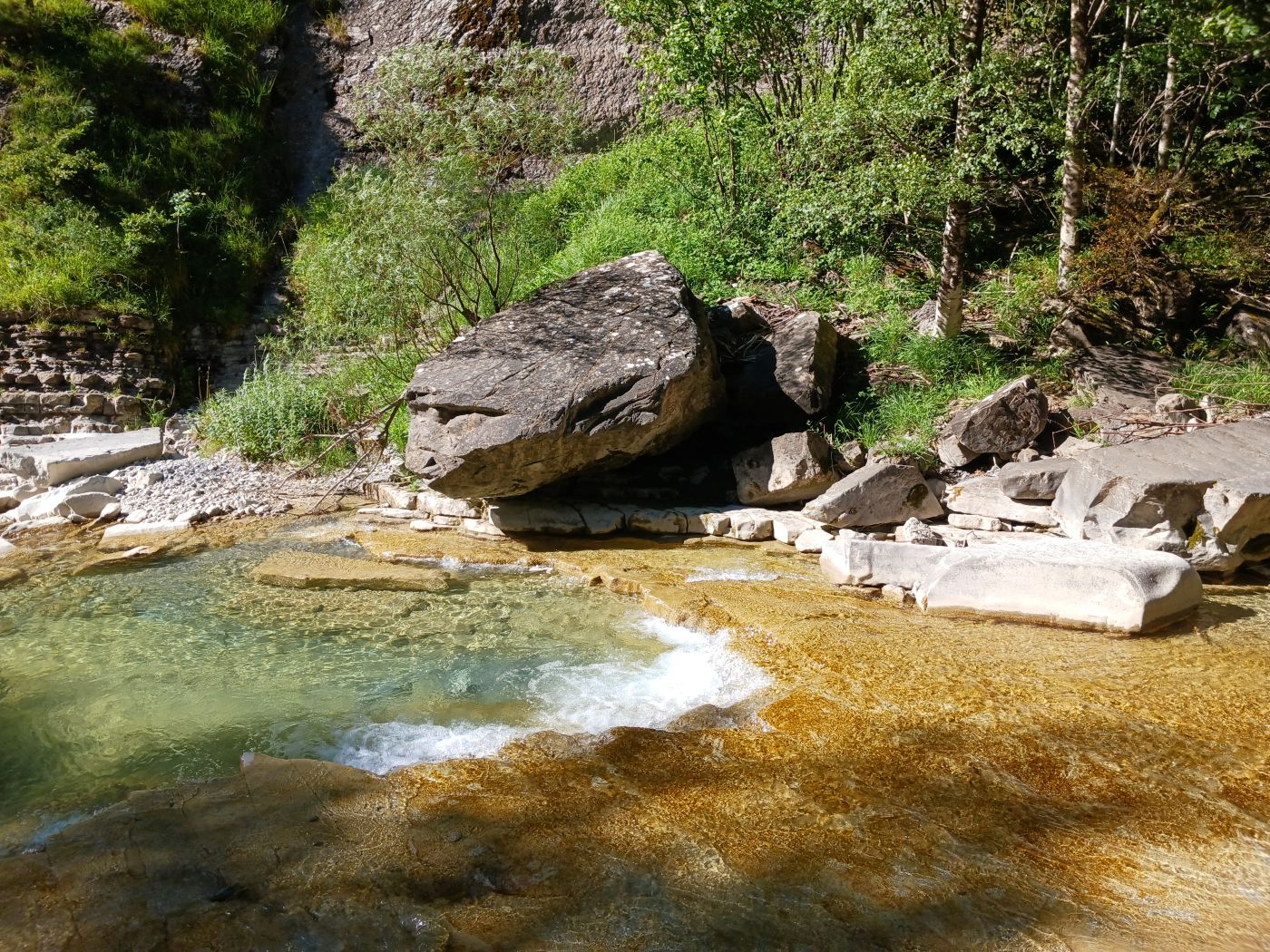Arroyo que corre por le Barranco del Sorrosal cediendo sus aguas al río Ara pocos metros después de la cascada