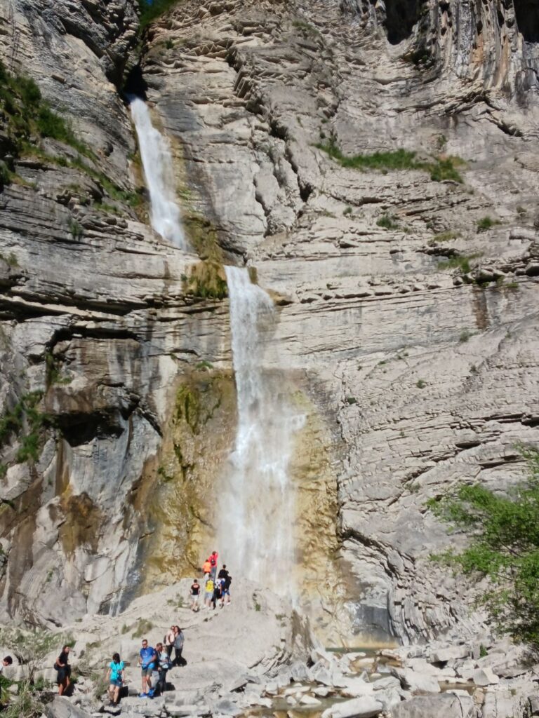 Una vez en las inmediaciones de la pared del barranco por la que se descuelga el doble salto de Sorrosal, el sobrecogimiento se apoderará de ti, multiplicando los efectos desinflamatorios y calmando el sistema nervioso. Estarás con una mayor satisfacción vital. Se debe al Asombro que producen parajes como éste. Respira profundo, consciente y disfrútalo.