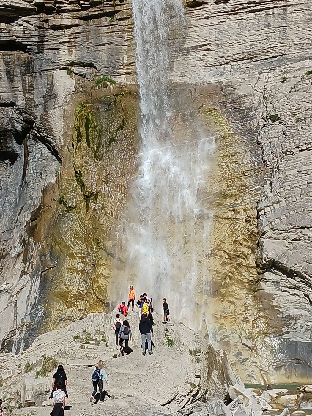 Al final del paseo una pasarela permite cruzar a la otra orilla. En época de poco caudal, algunos osados no renuncian al selfie a un palmo de la cortina de agua. Mucho cuidado con las rocas resbaladizas. Desde El Ecoturista nunca recomendamos abandonar el sendero. Disfruta sin forzar la foto. Piensa simplemente en la extraordinaria carga negativa del ambiente que tienes delante, aquí tus células son felices.